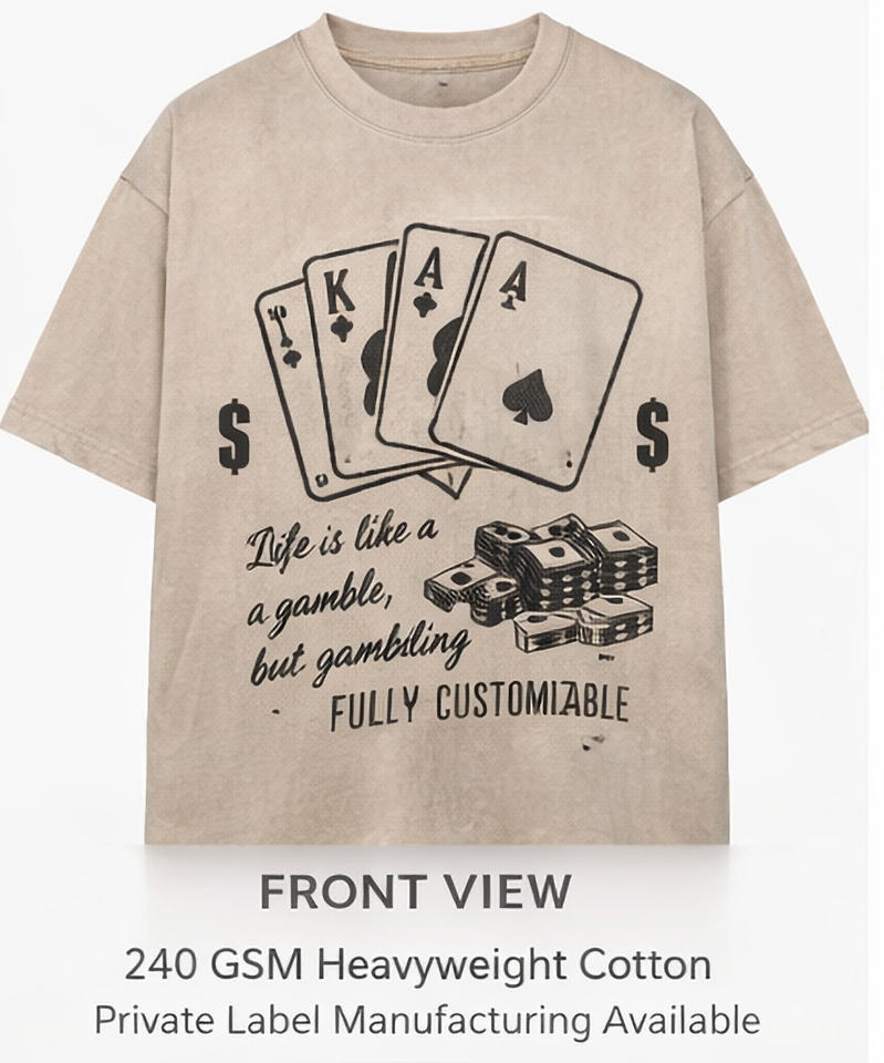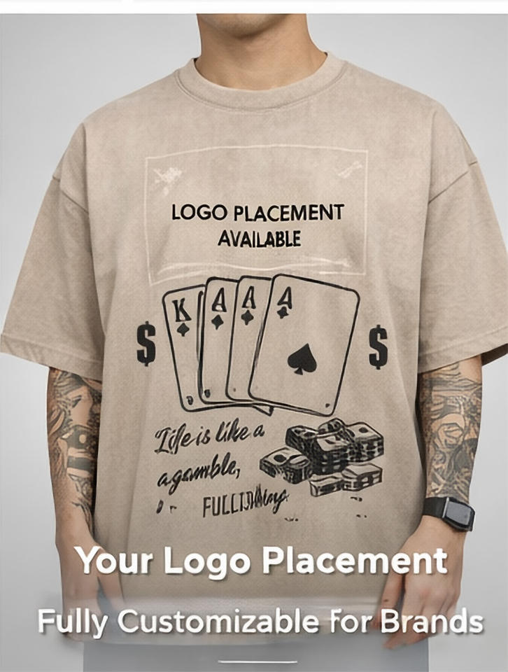 เสื้อยืดโอเวอร์ไซส์ผ้าถักพิมพ์ลายกราฟิกโป๊กเกอร์ด้านหน้าแบบสั่งทำพิเศษ สไตล์วินเทจ ลุคสตรีทแวร์ พร้อมพื้นที่ว่างสำหรับสกรีนลายตามสั่ง