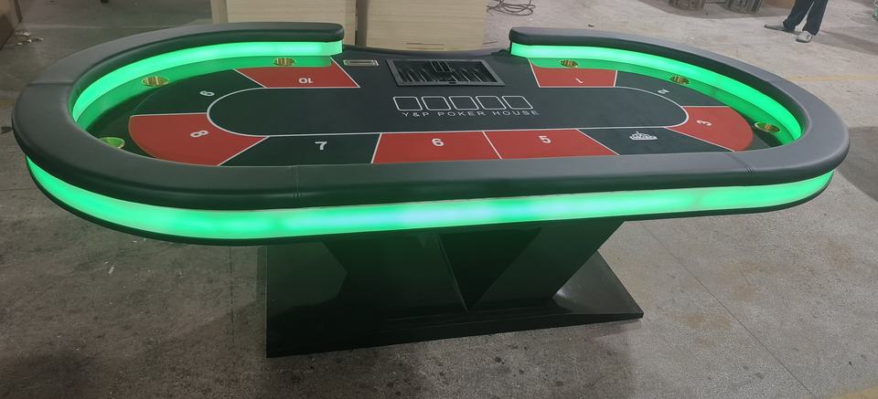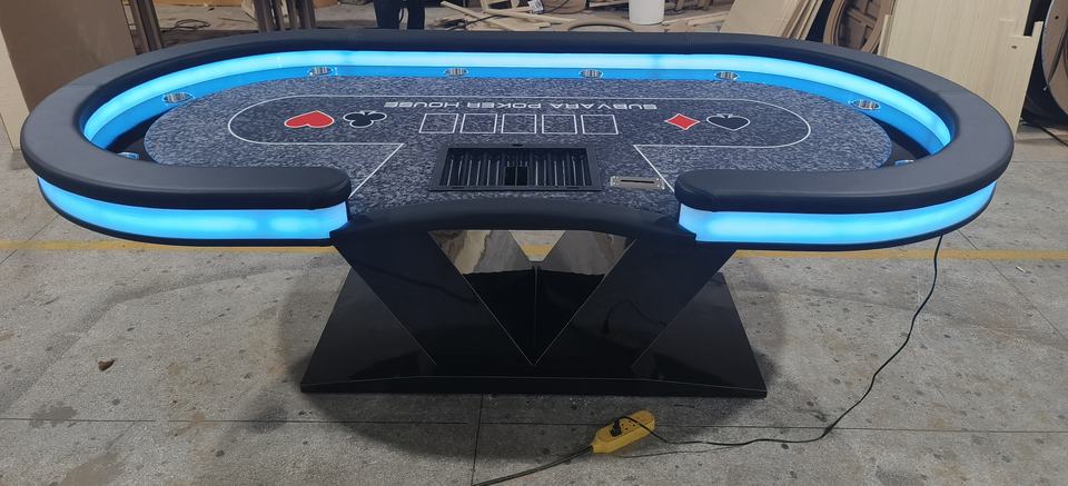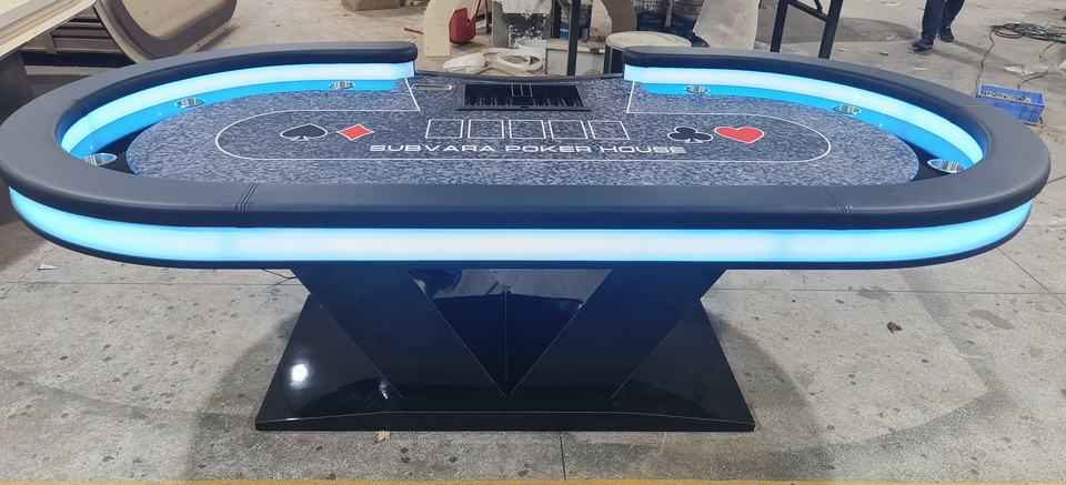 โต๊ะโป๊กเกอร์แบบกําหนดเองมืออาชีพผู้เล่น 10 คนคาสิโนเท็กซัสเกมโต๊ะโป๊กเกอร์พร้อมไฟ LED หรูหรา