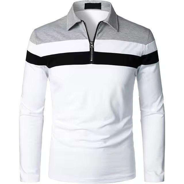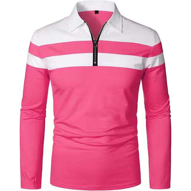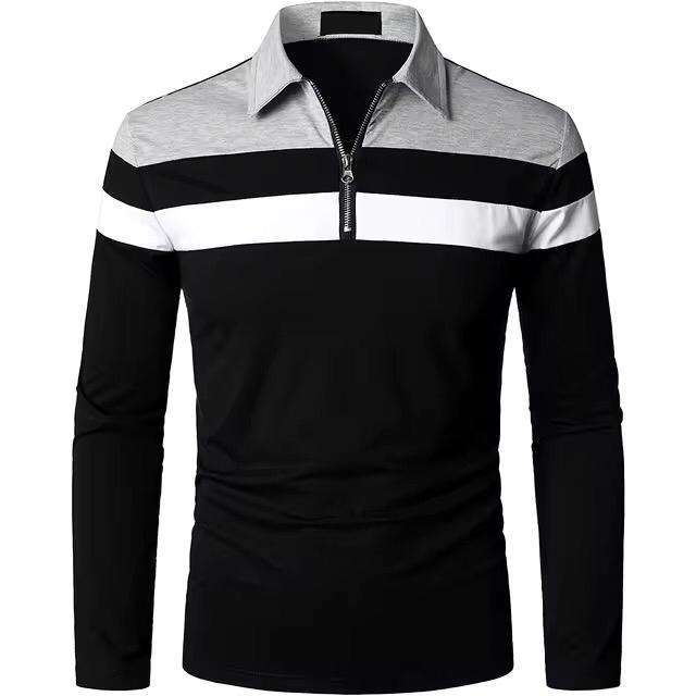 Custom Polo Fashion Men's Long Sleeve Knit Pullover Sweater Button-down Stripe Ribbed Casual Polo T shirt
