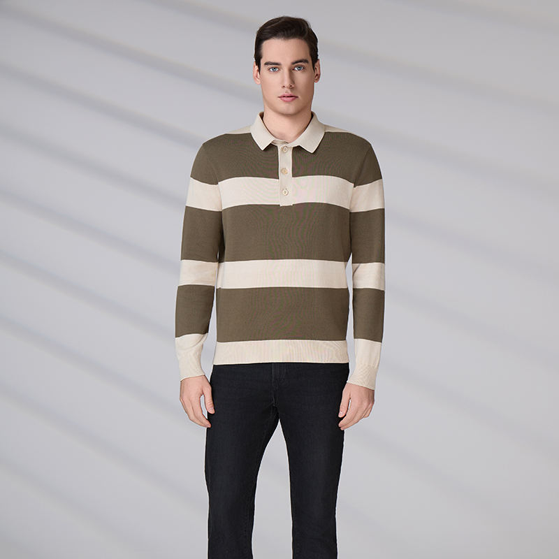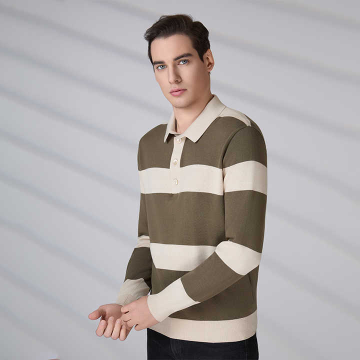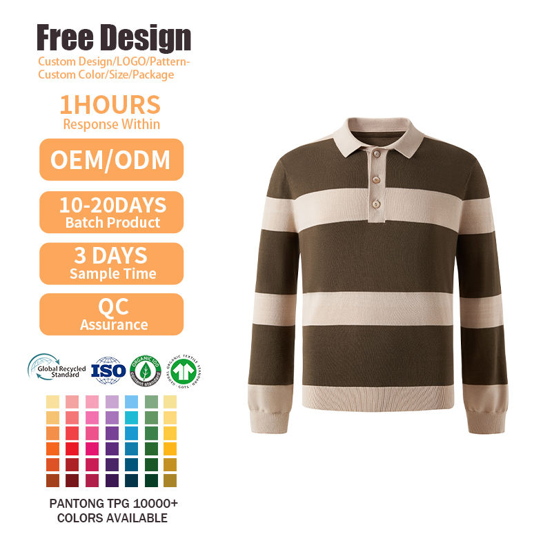 Custom Polo Shirt Casual Embroidered Logo Breathable 100% Cotton High Quality Knit Striped Pullover Mens Sweater