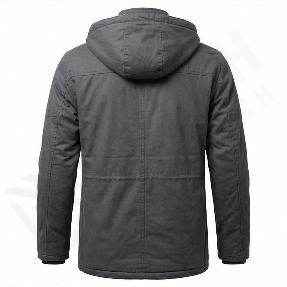 เสื้อแจ็คเก็ตโพลีเอสเตอร์แบบกำหนดเองสำหรับผู้ชาย เสื้อโค้ทกันหนาวแบบมีฮู้ดถอดได้ บุขนสัตว์ เสื้อพาร์กาบุใยสังเคราะห์ กันลม หนา ทนทาน