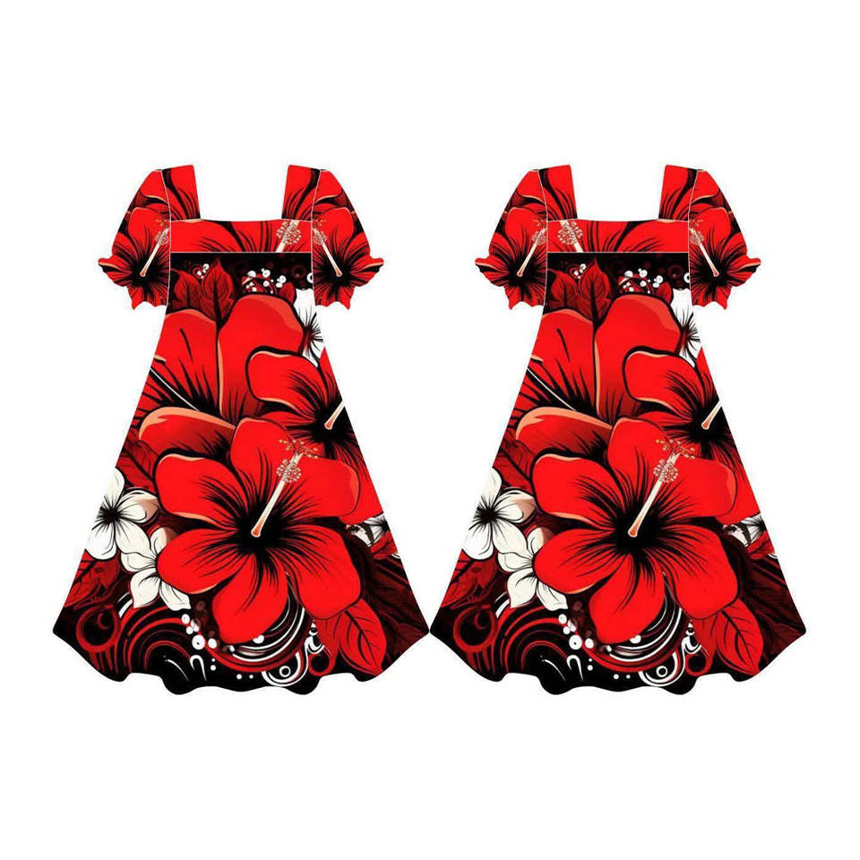 Custom Polynesian Printed Short Puffy Sleeve Mumu Dress New Style Round Collar Micronesian Mumu Dress