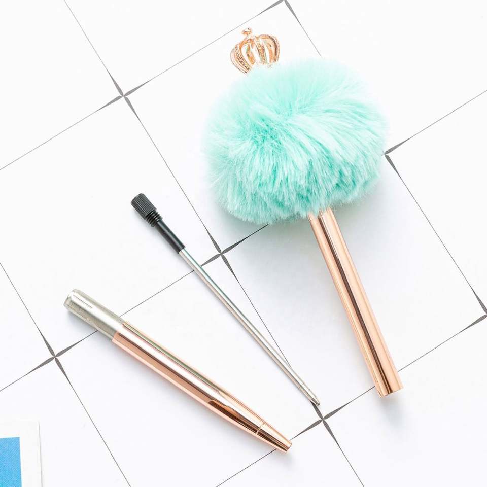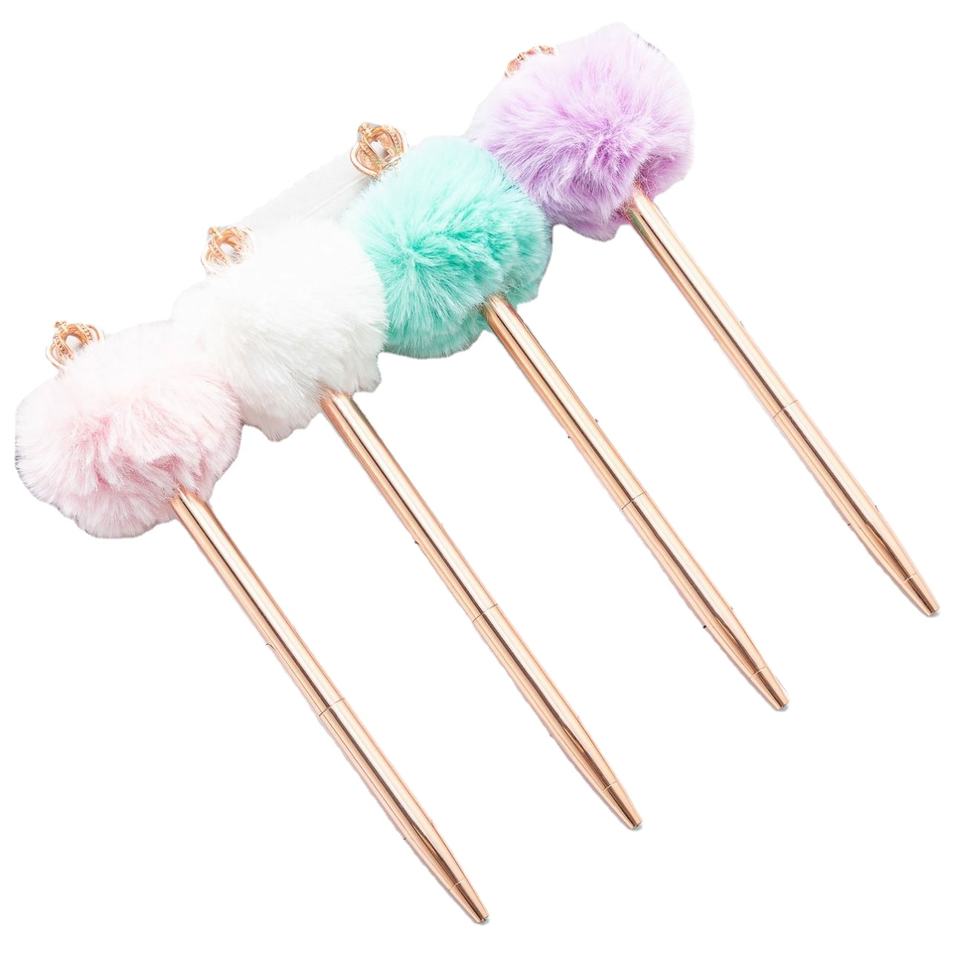 ปากกาลูกลื่นปอมปอมแบบกำหนดเอง ปากกาเจลขนปุยสำหรับของขวัญงานปาร์ตี้และอุปกรณ์เครื่องเขียน