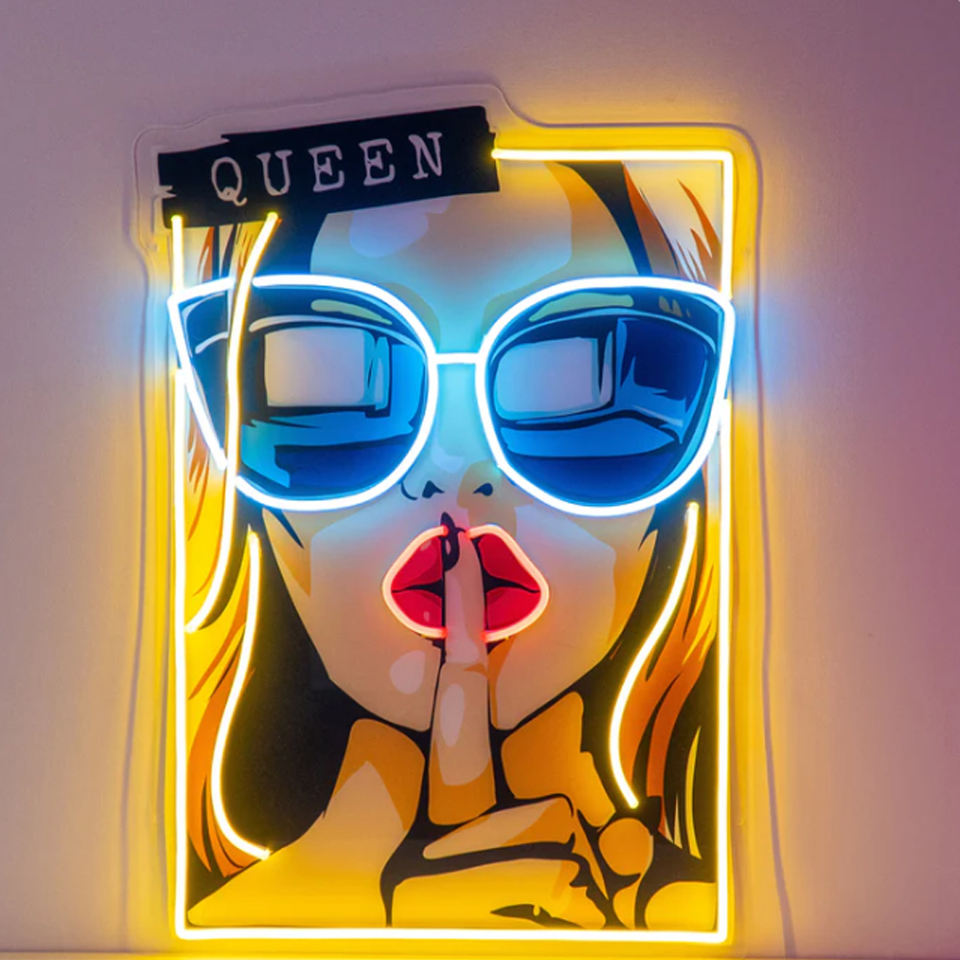 ป้ายไฟนีออนป๊อปออกแบบได้ตามต้องการป้ายไฟ LED หญิงสาวเซ็กซี่ในแว่นตาสาวเซ็กซี่มีความรักไฟ LED นีออนสำหรับตกแต่งผนังของคุณ