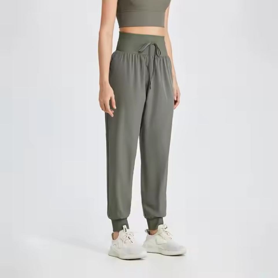 กางเกงจ็อกเกอร์ผ้าฝ้ายผู้หญิงยอดนิยม ทรงเรียบง่าย เอวยางยืด มีเชือกผูก