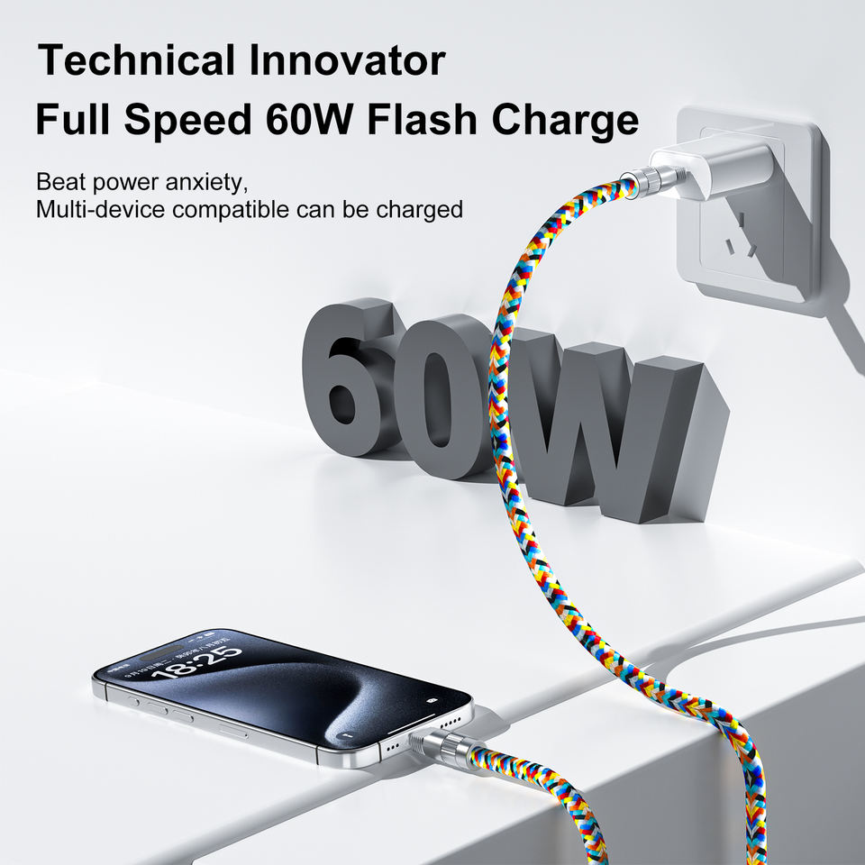 สาย PD60w ข้อมูลสำหรับโทรศัพท์แบบพกพา2อิน1, สายคล้องคอสายไนลอนสำหรับถ่ายโอนข้อมูลสามารถใช้กับคอมพิวเตอร์ได้อย่างรวดเร็วสามารถกำหนดเอง