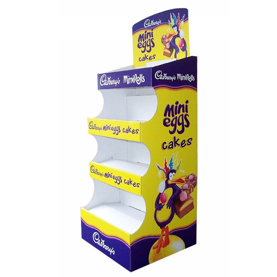 ชั้นวางกระดาษแข็งแบบพกพาสำหรับจัดแสดงสินค้า เช่น ช็อกโกแลต อาหาร และสินค้าในร้านค้า