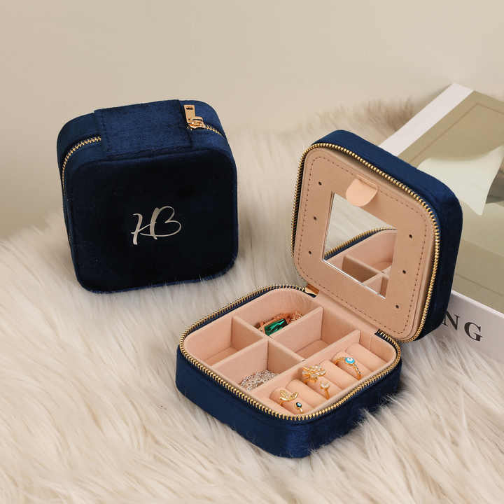 กล่องใส่เครื่องประดับแบบพกพา ทรงสี่เหลี่ยม ผ้ากำมะหยี่ แฟชั่น พร้อมซิป ใส่แหวน ต่างหู กระจกในตัว สำหรับจัดเก็บเครื่องประดับ เหมาะสำหรับการเดินทาง