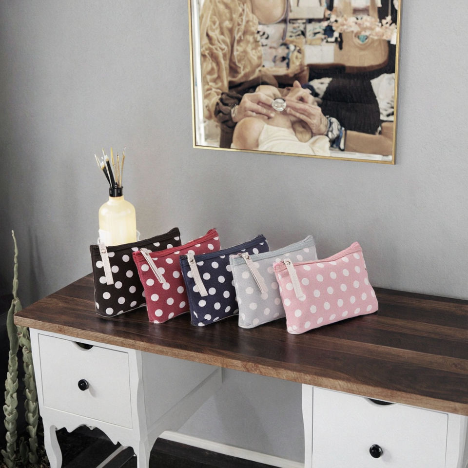 กระเป๋าเครื่องสำอางผ้าแคนวาสแบบพกพาลายจุดน่ารักสำหรับสาวๆ สไตล์แฟชั่นทันสมัย