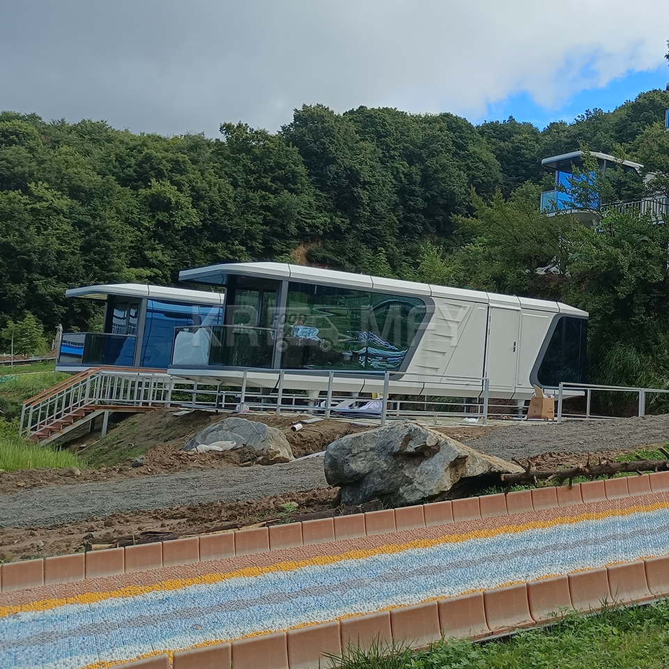 บ้านโมดูลาร์แบบแคปซูลคอนเทนเนอร์สำเร็จรูปเคลื่อนย้ายได้ ทันสมัย กันน้ำ เป็นมิตรกับสิ่งแวดล้อม