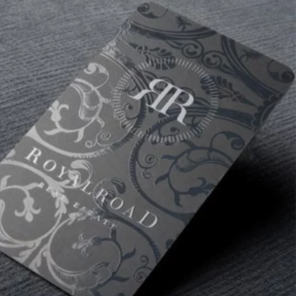 กระดาษฟอยล์เคลือบเงา3D พรีเมี่ยมแบบกำหนดเองนามบัตรกระดาษกันแสงยูวีลายนูนเป็นจุดนูนบัตรติดต่อทางสังคมขอบคุณ