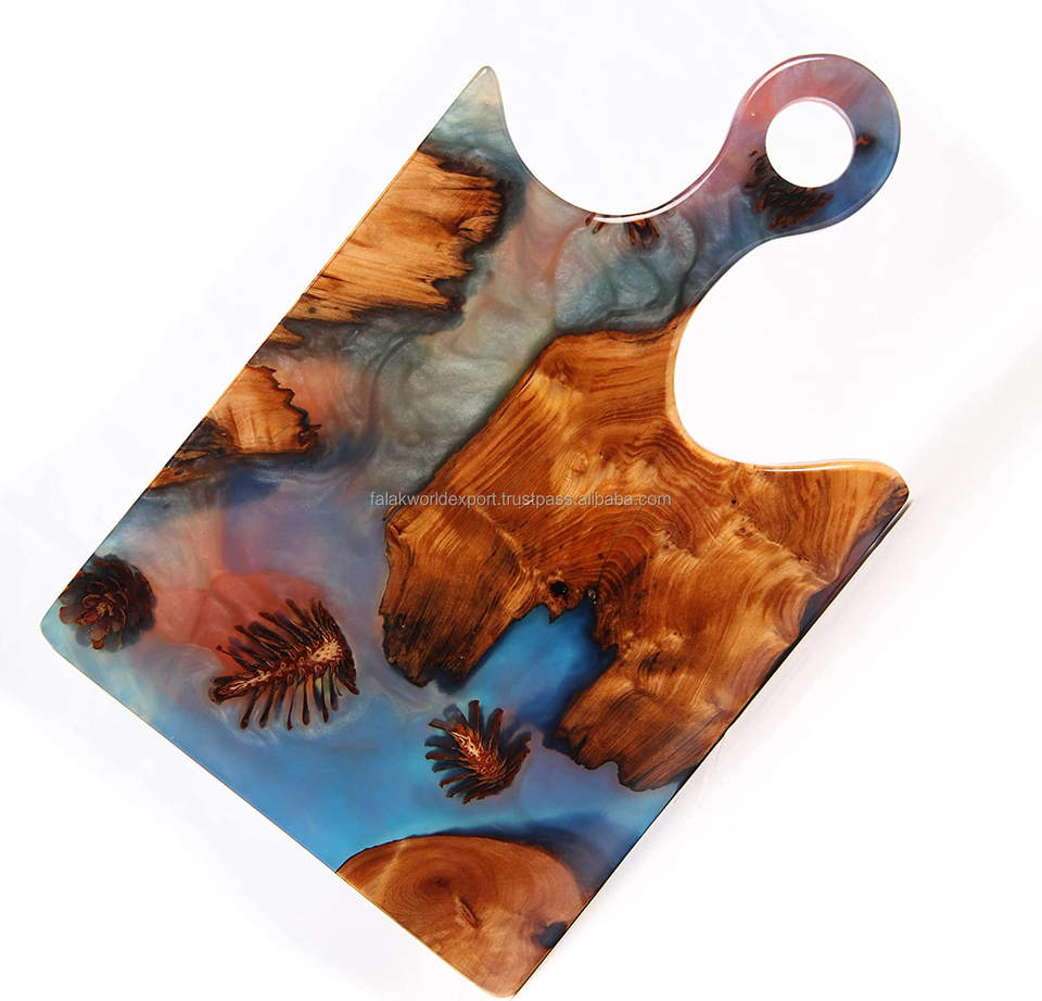 เขียงไม้อะคาเซียและอีพอกซีเรซินตัดชีสเป็นมิตรต่อสิ่งแวดล้อมพร้อมที่จับ