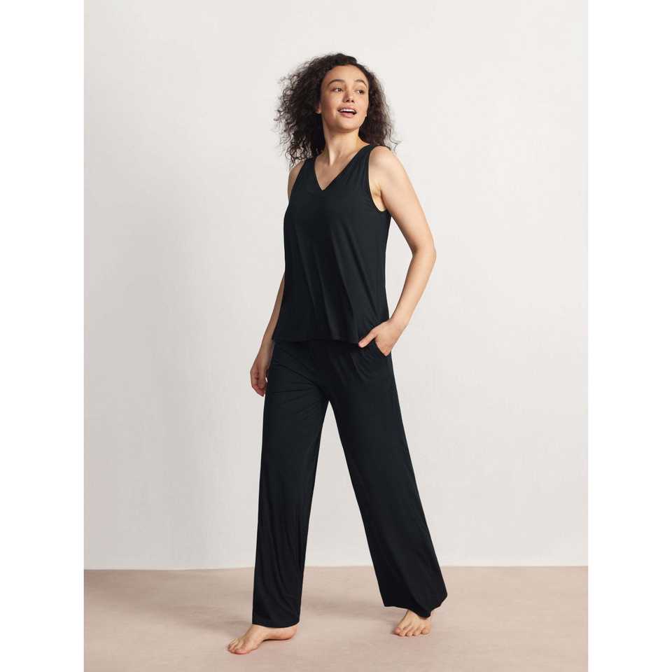 ชุดลำลองพรีเมียมสำหรับผู้หญิง 2 ชิ้น ผ้าเครป กางเกงขายาว เสื้อคอวีเนื้อผ้าใยไผ่นุ่มพลิ้ว ใส่ได้ทุกวัน ไซส์ XS