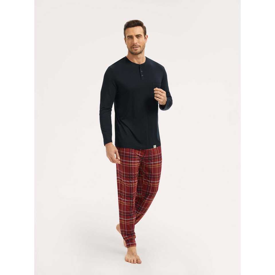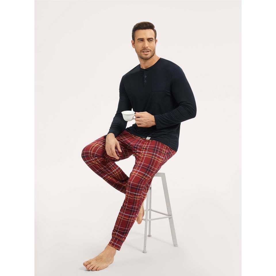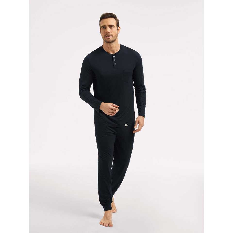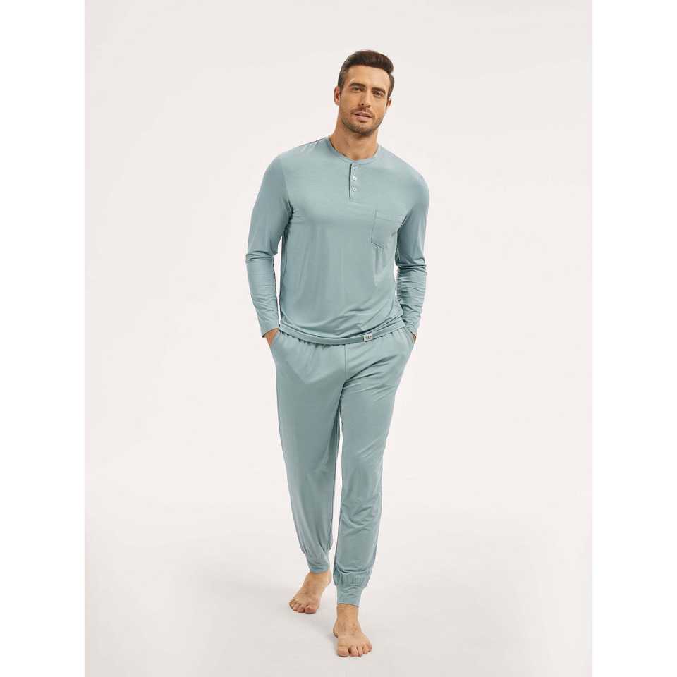 ชุดนอนเฮนลีย์ผู้ชายพรีเมียมแบบสั่งทำพิเศษ ผ้าถักซาตินและผ้าฝ้าย พร้อมโลโก้สั่งทำ ชุดลำลองใส่สบายสำหรับฤดูหนาว