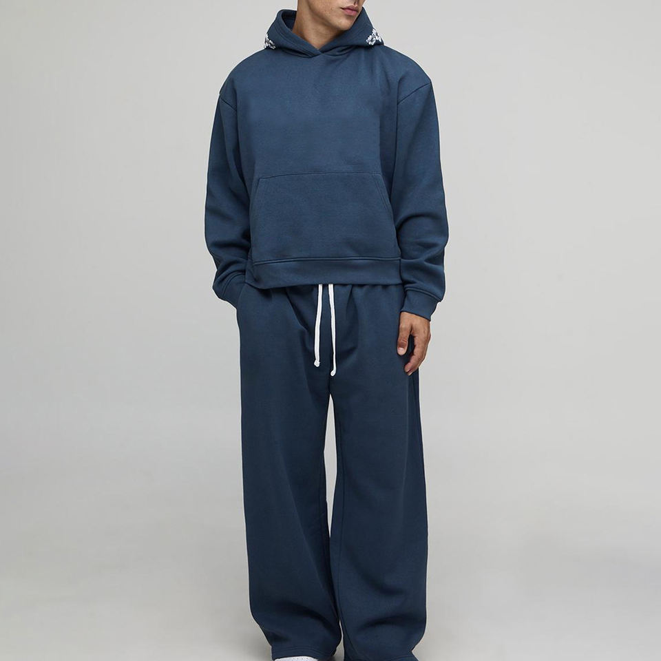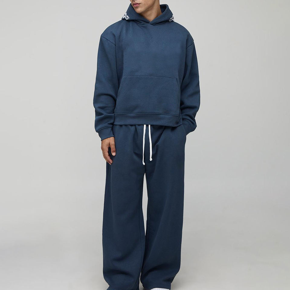 ชุดวอร์มผู้ชายสไตล์สตรีทแวร์ฤดูหนาวคุณภาพพรีเมียมแบบสั่งทำพิเศษ ผลิตจากผ้าฝ้ายฟลีซ 100% ทรงบ็อกซี่ พร้อมกางเกงจ็อกเกอร์และชุดกีฬาแบบแบ็กกี้
