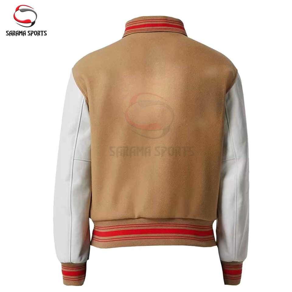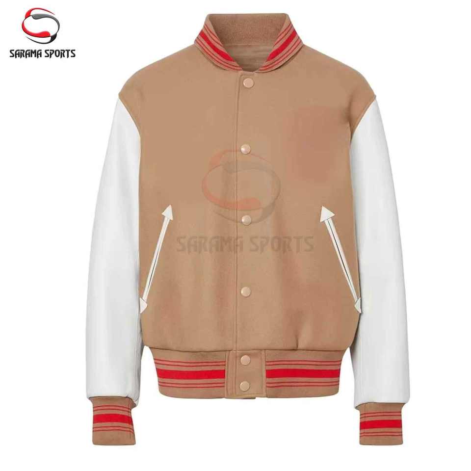 แจ็คเก็ตวาร์ซิตี้พรีเมียมแบบสั่งทำสำหรับผู้ชายและผู้หญิง สไตล์เบสบอล ตัวเสื้อทำจากผ้าขนสัตว์ แขนเสื้อทำจากหนัง รับผลิตแบบ OEM ODM ขายส่งจากโรงงาน