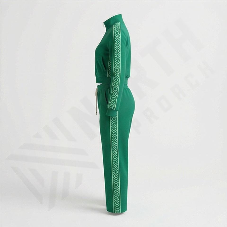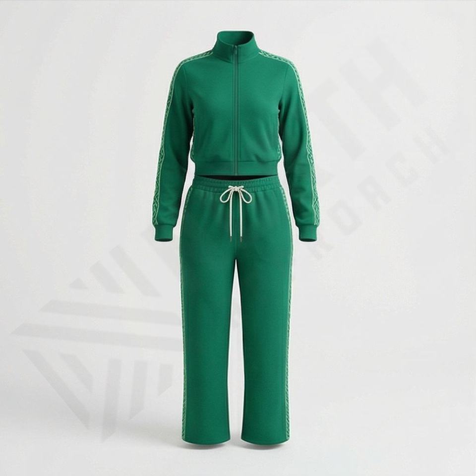 ชุดเซ็ตแทรคสูทผู้หญิง 2 ชิ้น เสื้อแจ็คเก็ตครอปซิปผ้าฝ้ายพรีเมียม 100% สำหรับฤดูหนาว กางเกงทรงหลวม แฟชั่นสตรีทแวร์มีฮู้ด