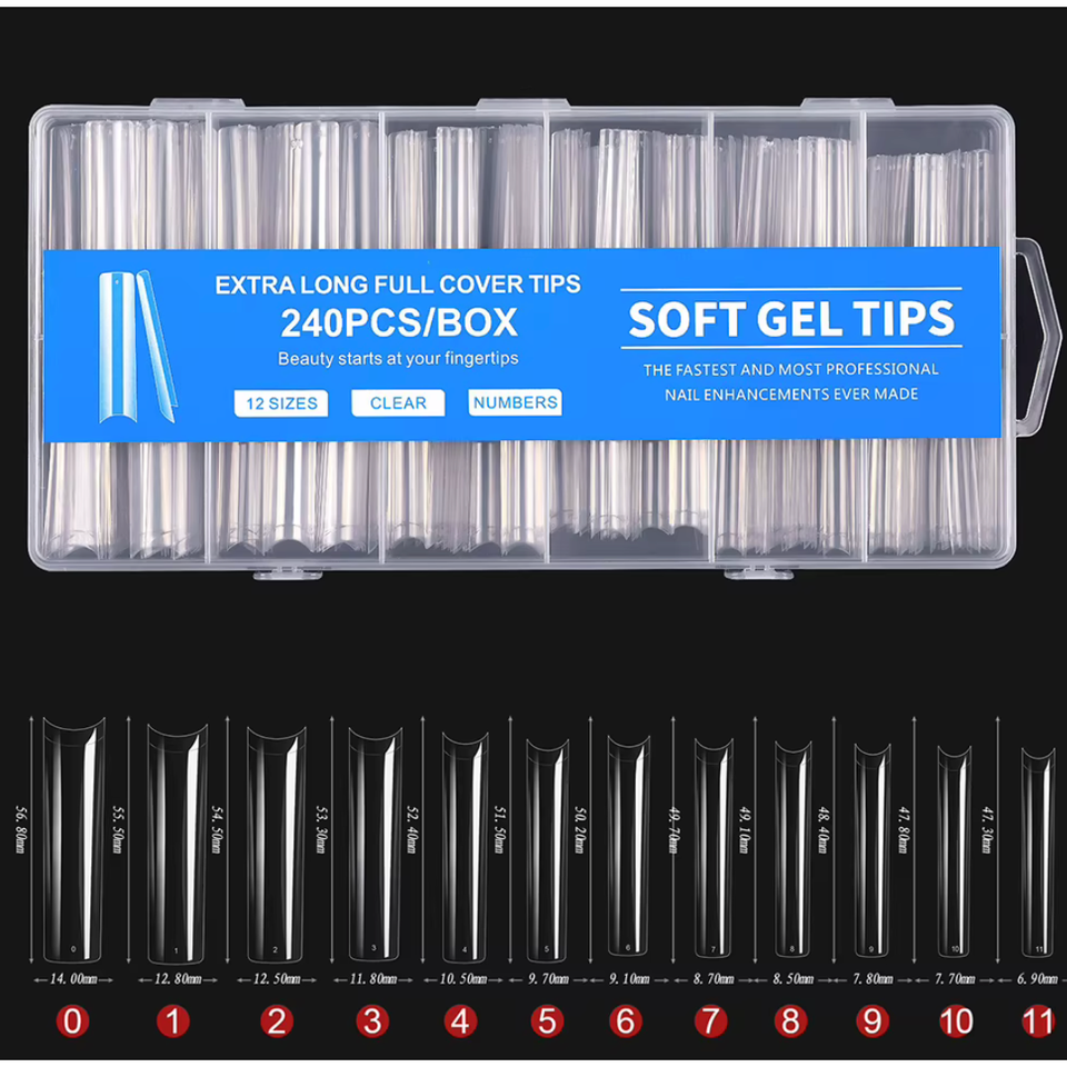 ปลายเล็บอะคริลิคแบบกดติดเอง รุ่นยาวพิเศษ ดีไซน์แบบร้านเสริมสวย พร้อมโลโก้สั่งทำ วัสดุ ABS คริสตัล มีตัวอย่างให้ทดลองฟรี