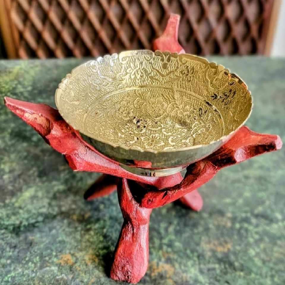 ขาตั้งกล้องไม้สัก6นิ้วพร้อมคริสตัลสำหรับลูกโคบร้าสีน้ำตาลแกะสลักด้วยมือตามสั่ง