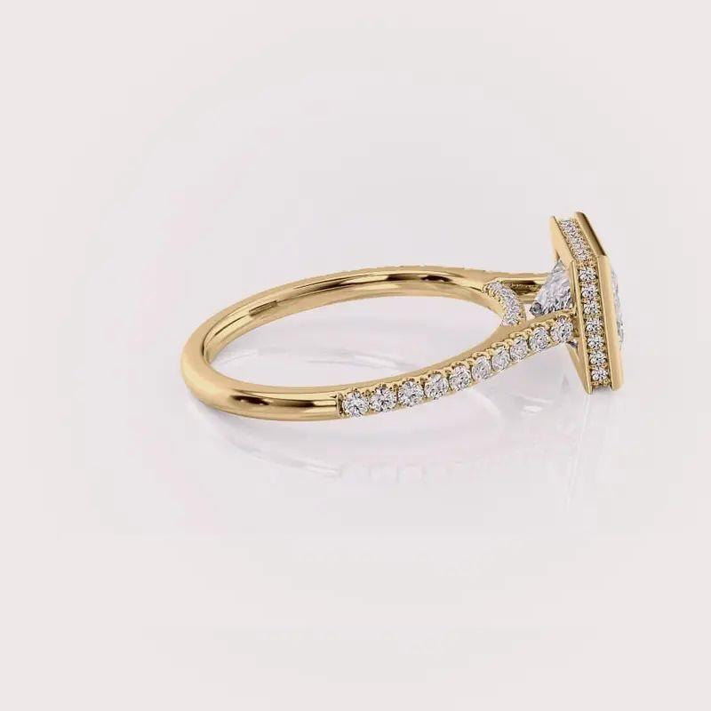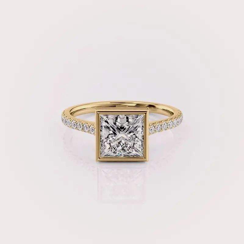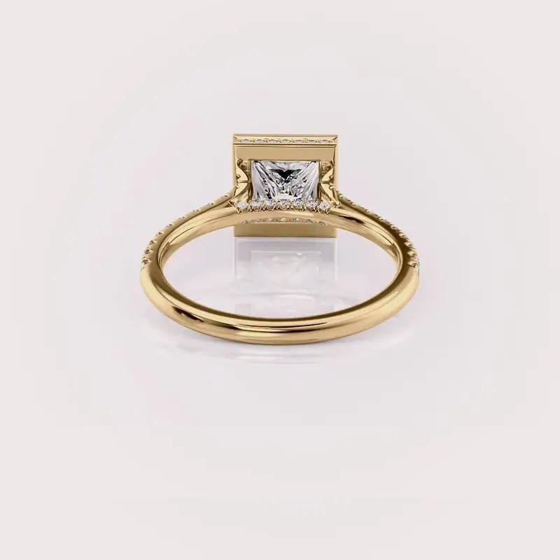 แหวนหมั้นเพชรทรงปรินเซสคัทสั่งทำพิเศษ ฝังเพชรแล็บโกรว์ ตัวเรือนทองคำ 18K สีเหลือง/สีโรส/สีขาว ชุบโรเดียม ได้รับการรับรองจาก IGI