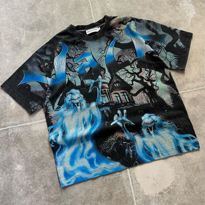 เสื้อยืดลายพิมพ์ DTG สำหรับผู้ชายเสื้อยืดพิมพ์ลายผ้าคอตตอน100% โอเวอร์ไซส์ทรงหลวมเข้ารูปพิมพ์ลายดีที300gsm