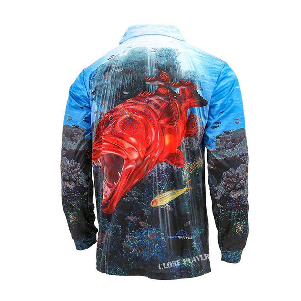 เสื้อตกปลาผู้ใหญ่พิมพ์ลายตามสั่ง โพลีเอสเตอร์ แขนยาว 50 ชิ้น แบบซับลิเมชั่น เสื้อตกปลาผู้ชาย ไซส์ใหญ่ แห้งเร็ว ระบายอากาศได้ดี