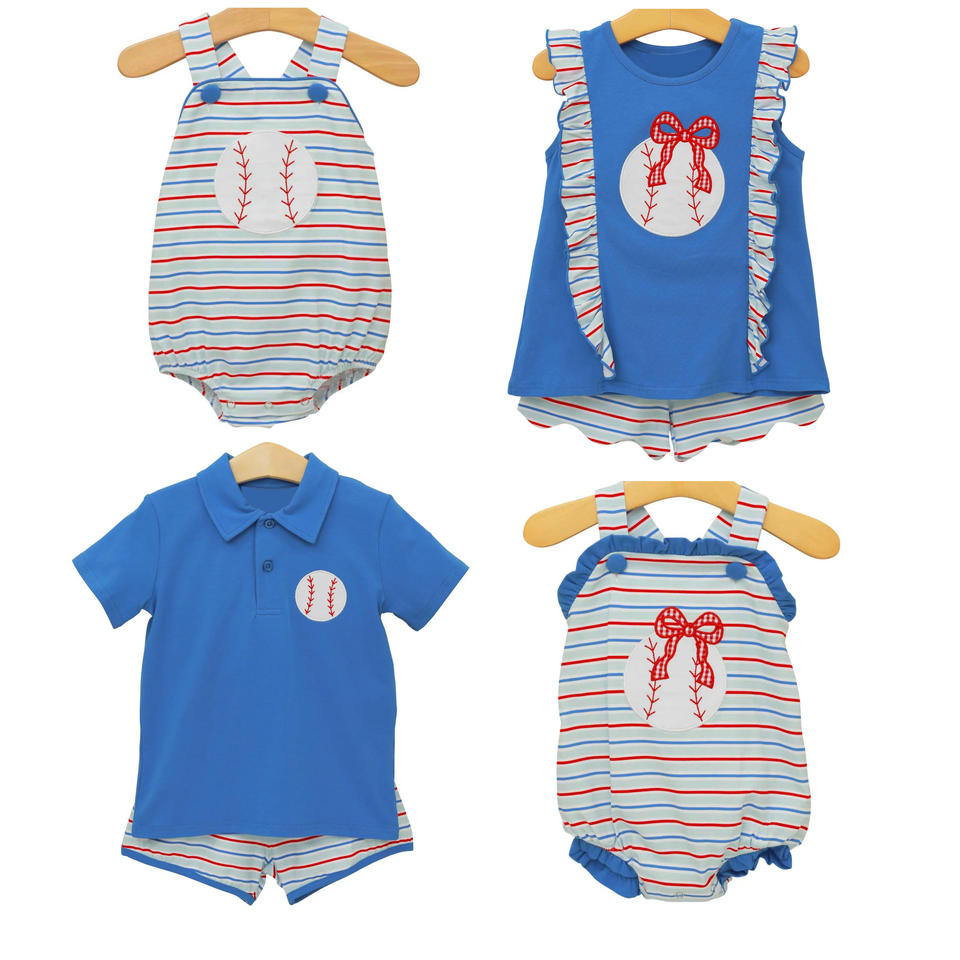 ชุดเสื้อผ้าเด็กแบบสั่งพิมพ์ลายโบว์เบสบอล กางเกงขาสั้นเด็ก ชุดรอมเปอร์เด็กเล็ก ขายส่ง ชุดเข้าชุดพี่น้อง ผ้าคอตตอนผสม