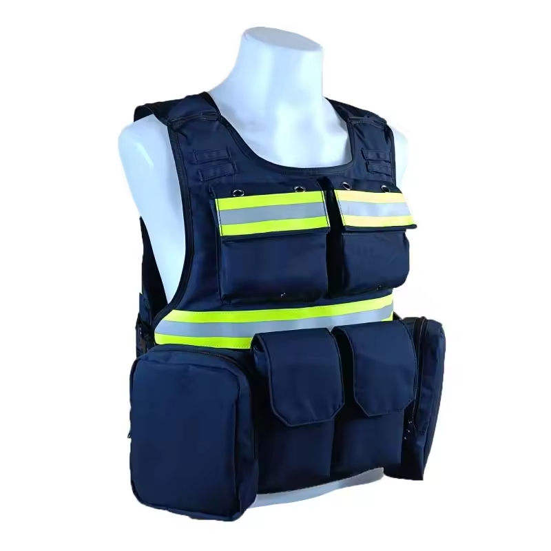 เสื้อกั๊กนิรภัยสะท้อนแสงโพลีเอสเตอร์กันไฟพิมพ์ลายตามสั่ง ความปลอดภัยสูง มองเห็นได้ชัดเจน แบบแยกส่วน สำหรับกรณีฉุกเฉิน