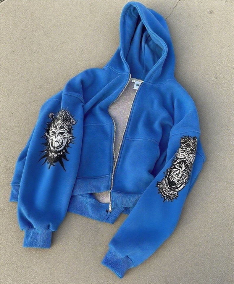 เสื้อฮู้ดดี้ผ้าฝ้ายฟลีซพิมพ์ลายตามสั่ง ทรงโอเวอร์ไซส์ ทรงบ็อกซี่ ระบายอากาศได้ดี เนื้อผ้าหนา ไหล่ตก มีซิป สำหรับผู้ชาย