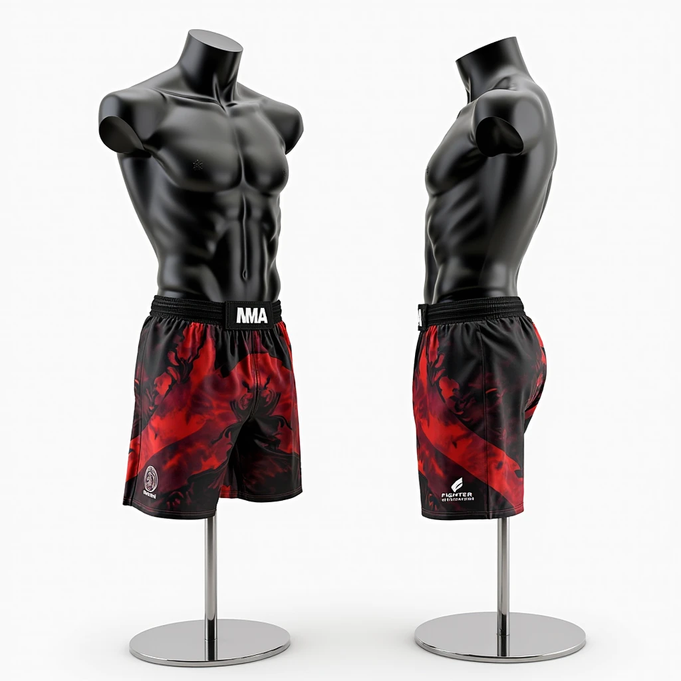 กางเกงขาสั้นต่อสู้แบบ MMA แห้งเร็วน้ำหนักเบายืดพิมพ์ดิจิตอลออกแบบได้ตามต้องการสำหรับฝึกออกกำลัง