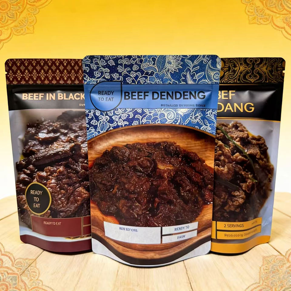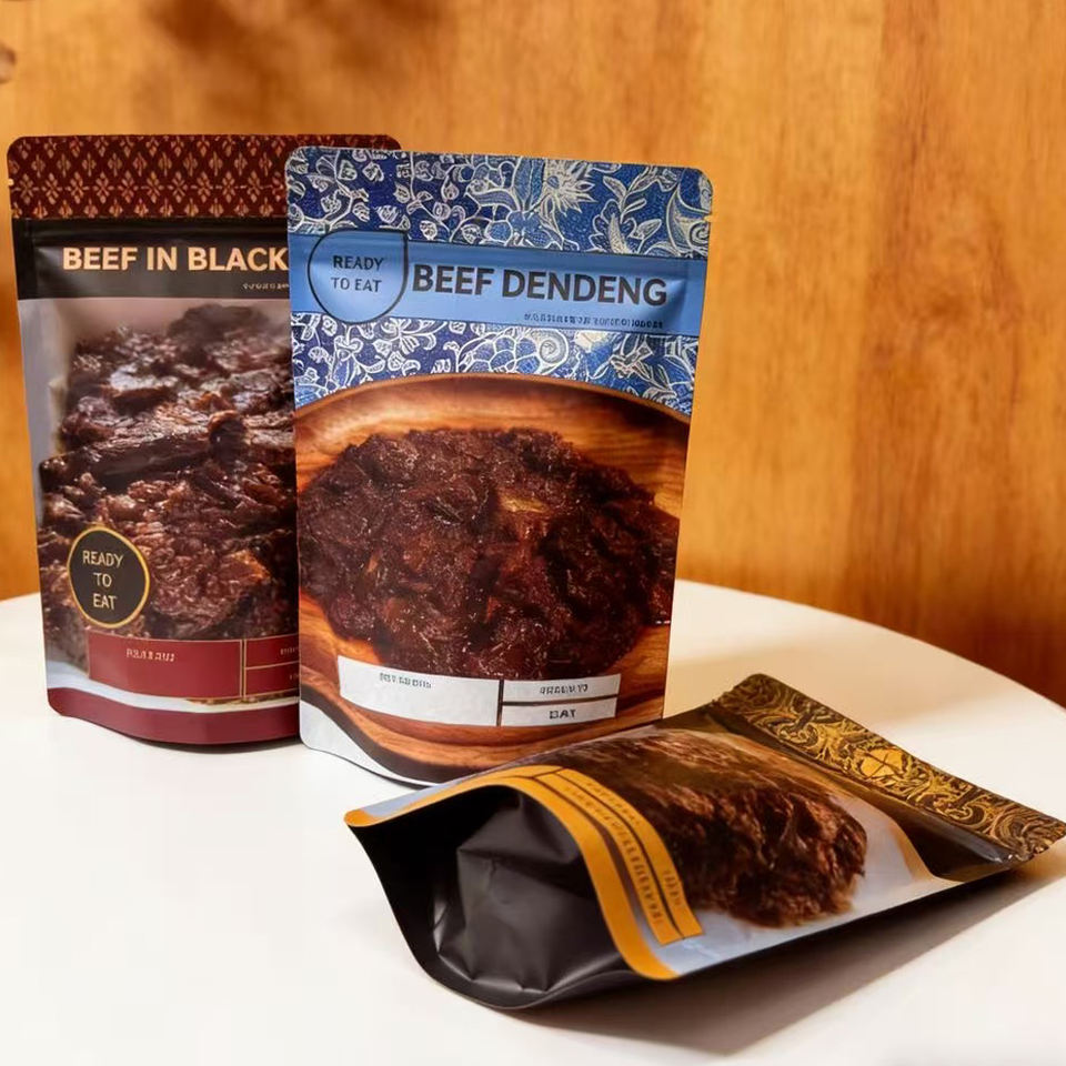 ถุงบรรจุภัณฑ์อาหารเกรดพรีเมียมกันกลิ่นพิมพ์ลายตามสั่ง สำหรับบรรจุเครื่องเทศ 200 กรัม ถุงใส่เนื้ออบแห้ง