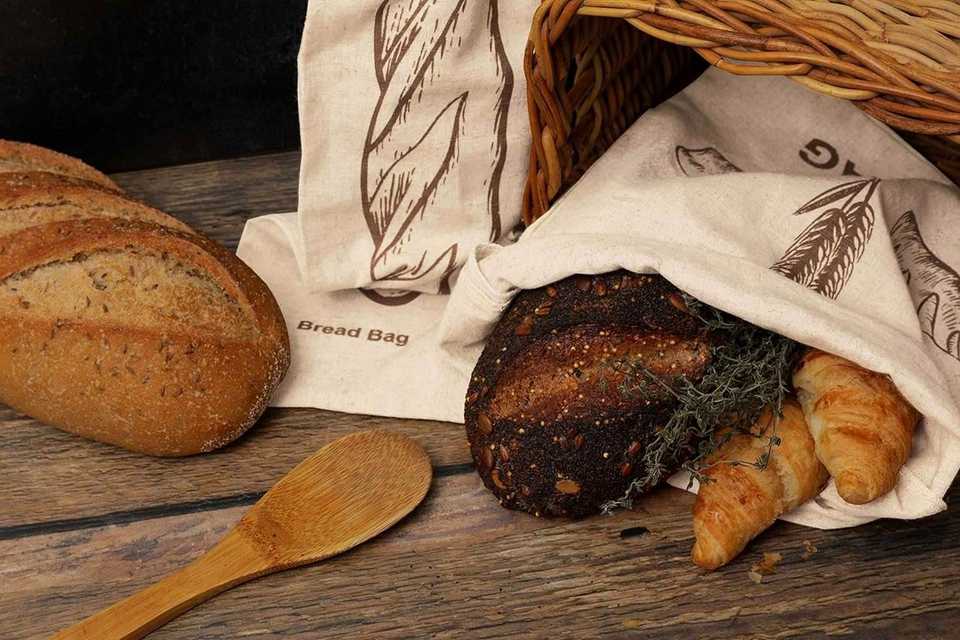 ถุงใส่ขนมปังผ้าฝ้ายผ้าลินินออร์แกนิกแบบใช้ซ้ำได้