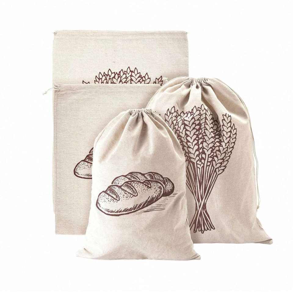 ถุงใส่ขนมปังผ้าลินินผ้าใบออร์แกนิกใช้ซ้ำได้พิมพ์ลายสำหรับใส่อาหารเป็นมิตรต่อสิ่งแวดล้อมแบบโฮมเมด