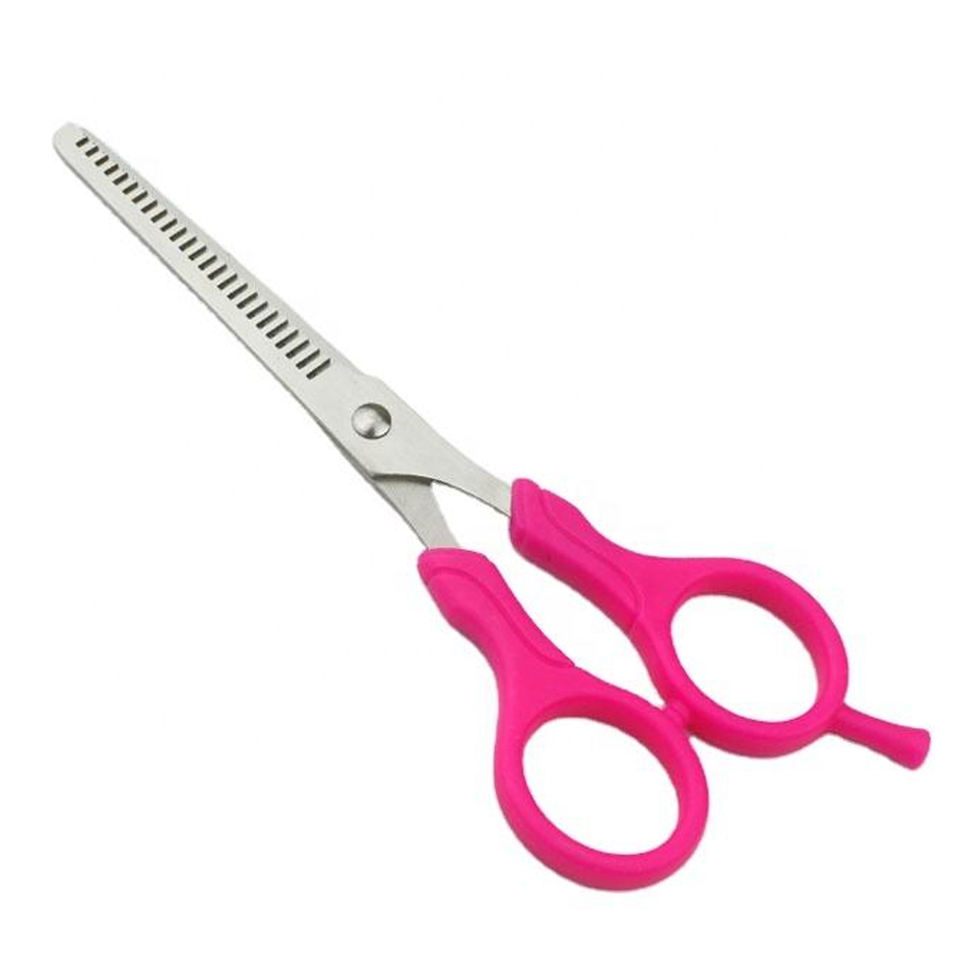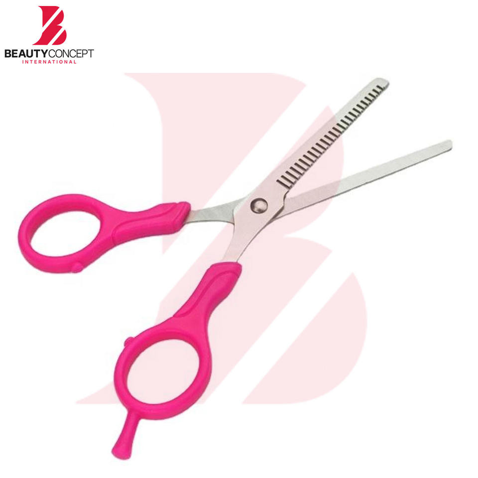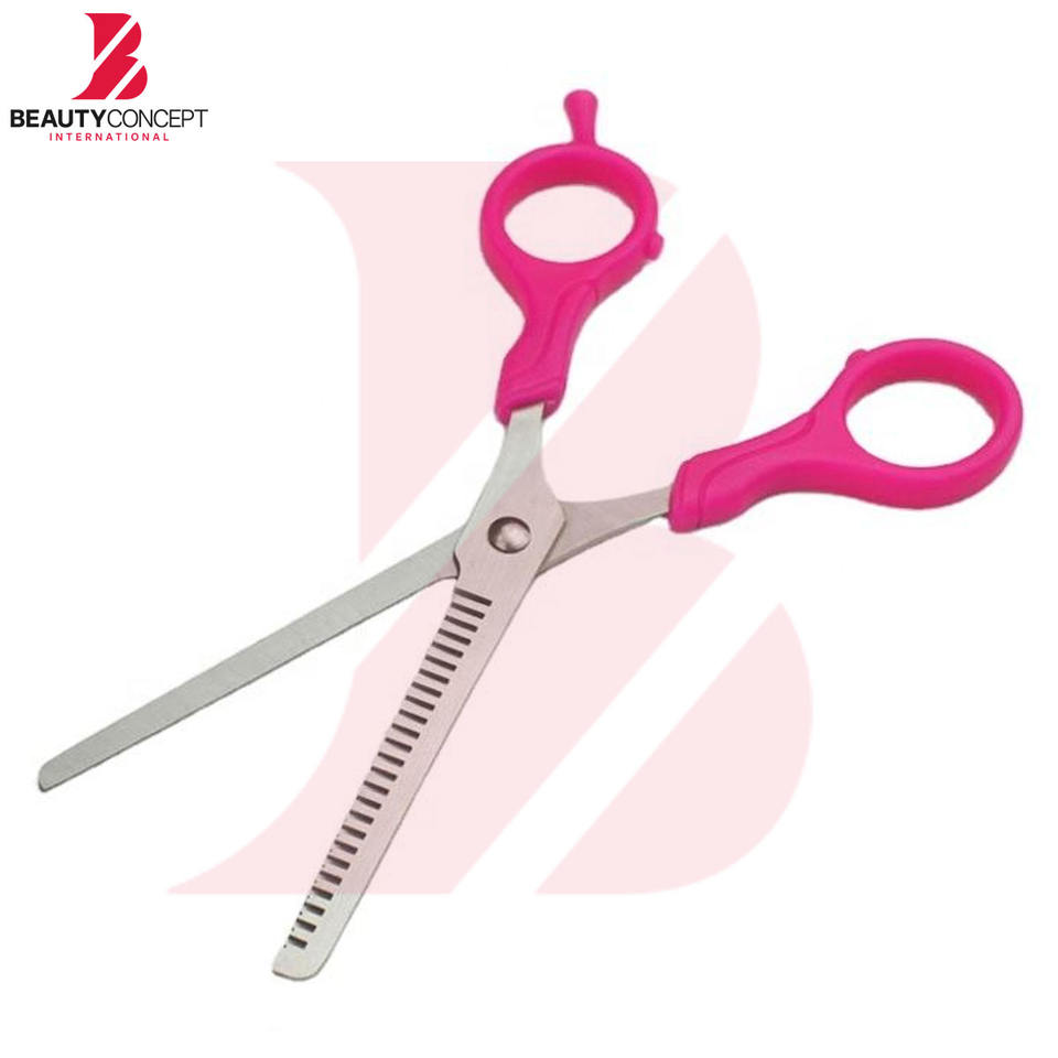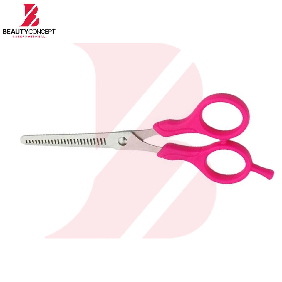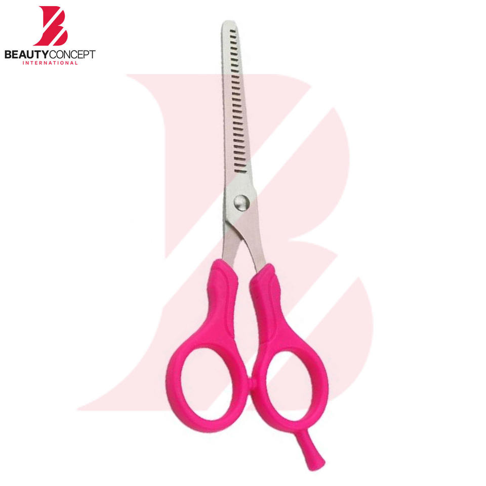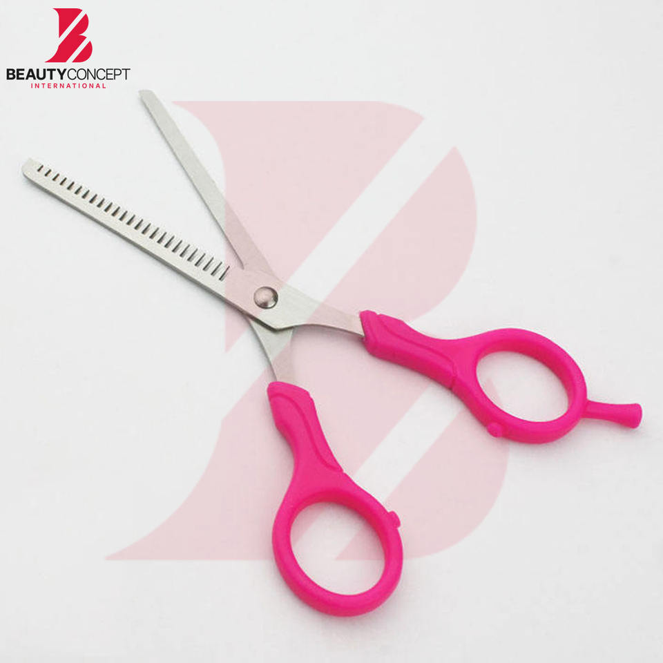 กรรไกรซอยผมด้ามจับพลาสติกสีชมพูสดใส พิมพ์โลโก้ได้ตามต้องการ สำหรับช่างตัดผมมืออาชีพ ร้านทำผม
