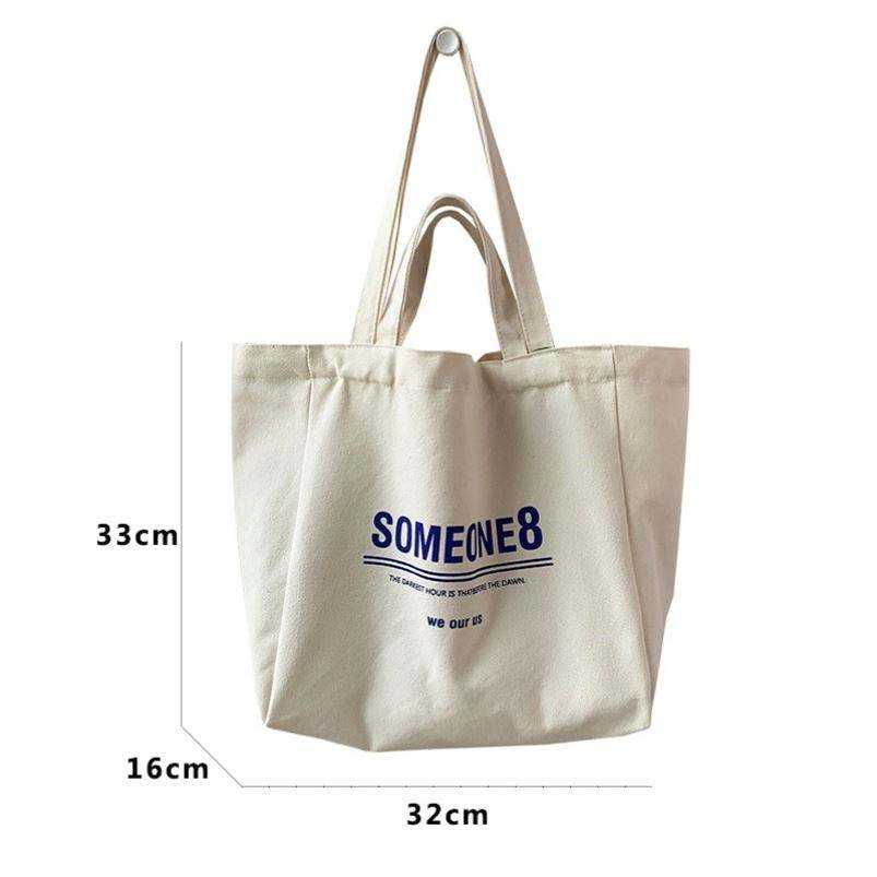 กระเป๋าผ้าแคนวาสพิมพ์โลโก้ตามสั่ง ขนาดใหญ่ สีขาว แฟชั่น ใช้ได้สองมือ เป็นมิตรกับสิ่งแวดล้อม รีไซเคิลได้