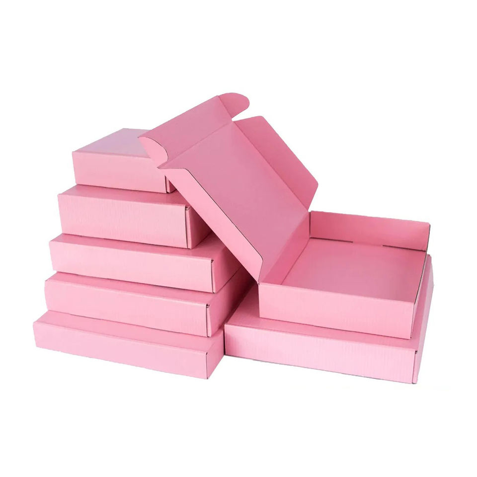 กล่องกระดาษคราฟท์สีชมพูสำหรับจัดส่ง