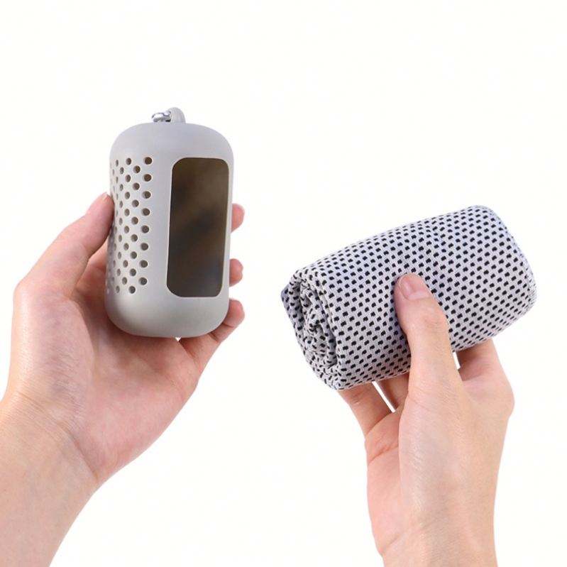 ผ้าขนหนูไมโครไฟเบอร์แบบพกพาพร้อมกล่องซิลิโคนสำหรับใส่ผ้าขนหนูใช้ในยิมพิมพ์โลโก้ได้ตามต้องการ