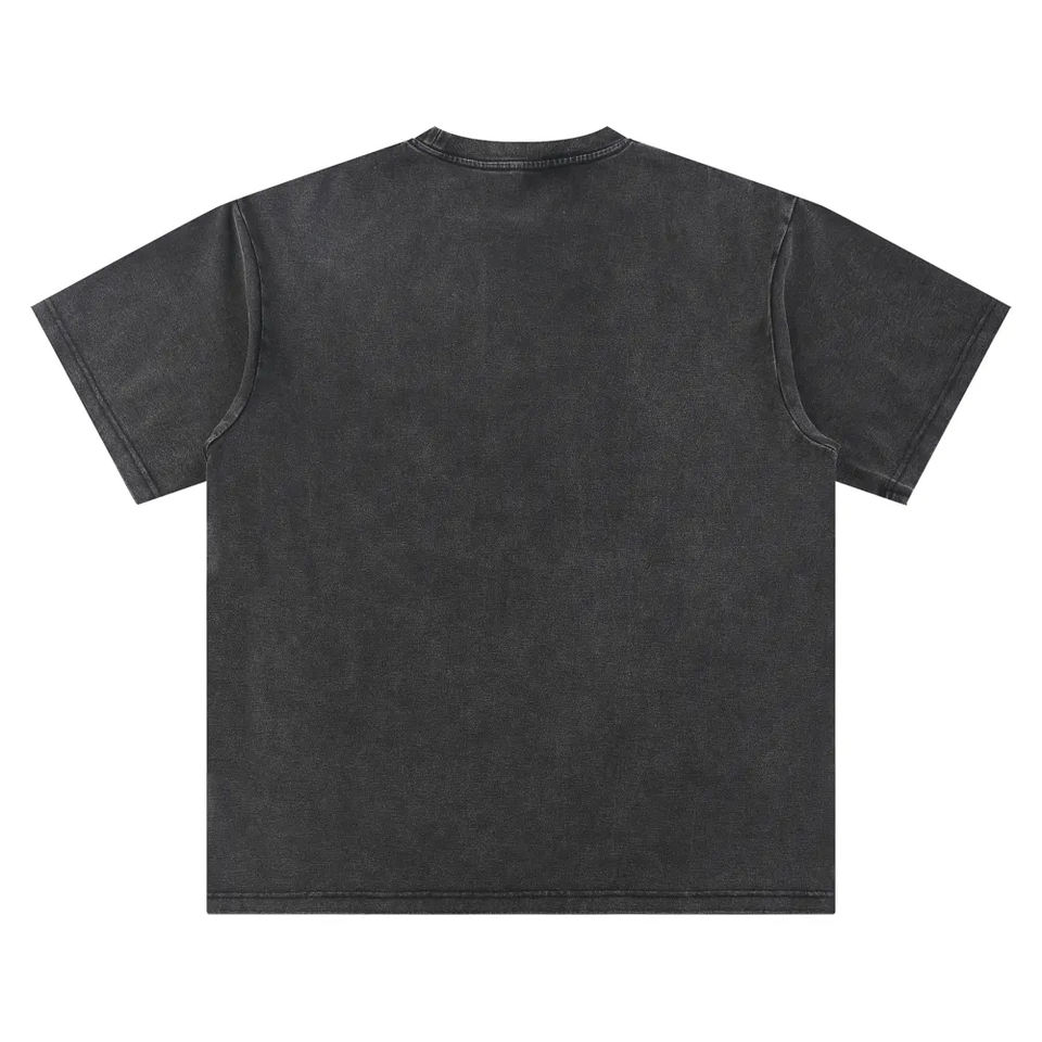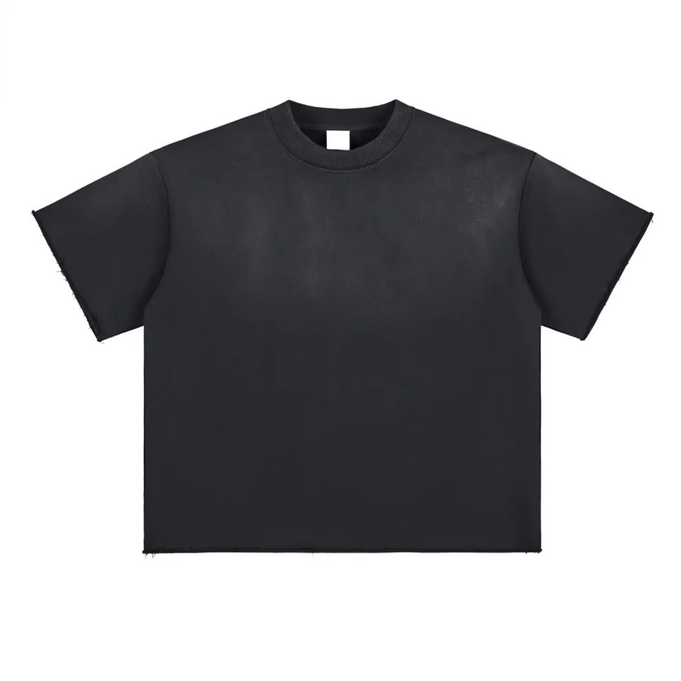 เสื้อยืดทรงบ็อกซี่พิมพ์ลายโลโก้แบบกำหนดเอง สีขาว สไตล์สเปรย์วอช ลุควินเทจ สีซีดแบบทราย ลายกราฟิกโอเวอร์ไซส์ ผ้าฝ้าย 100% เสื้อยืดผู้ชาย