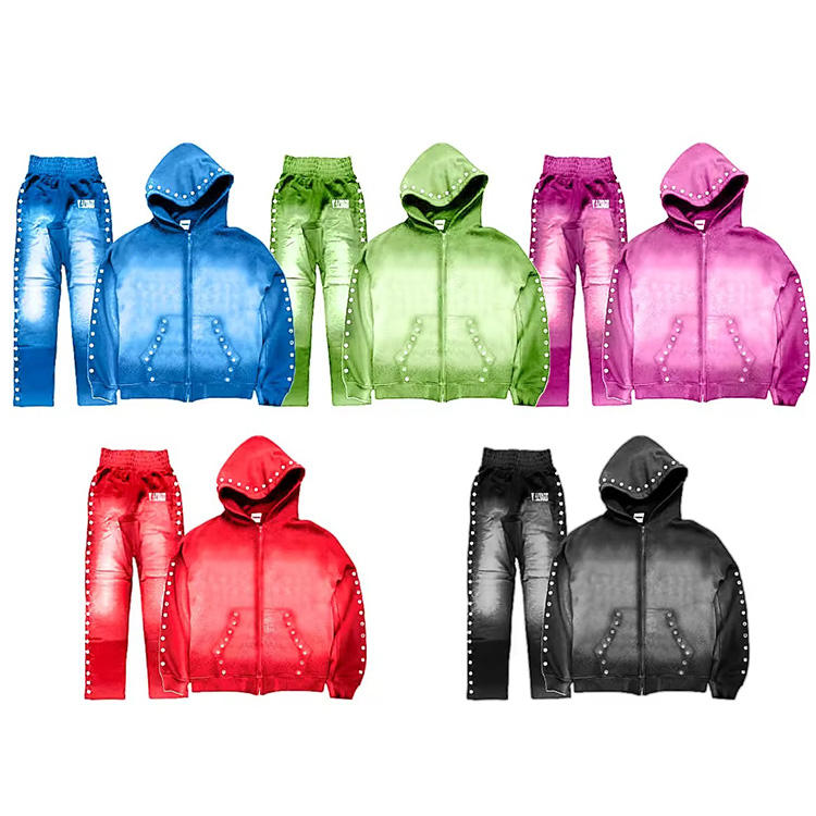 ชุดวอร์มผู้ชายแบบมีฮู้ดและกางเกงขายาวพิมพ์ลายโลโก้ตามสั่ง ชุดออกกำลังกาย 2 ชิ้น ชุดวอร์มซิป