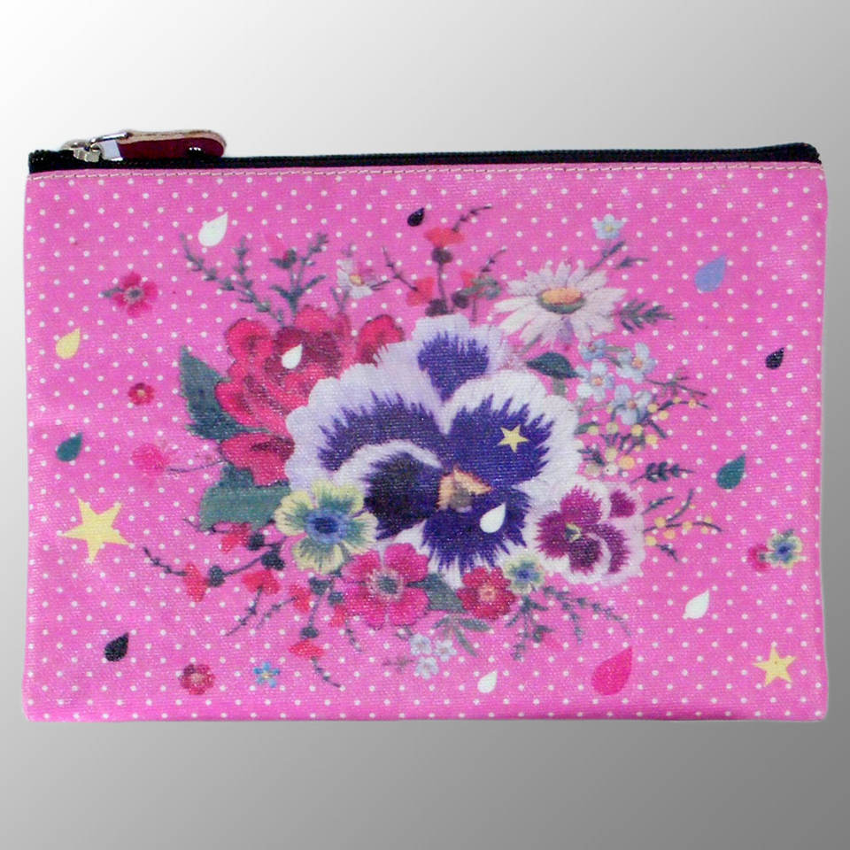 กระเป๋าผ้าใบใส่เครื่องสำอางหรูหราพิมพ์ลายได้ตามต้องการกระเป๋าใส่เหรียญกระเป๋าผ้าใบพิมพ์ลายดิจิทัลพร้อมฝาปิดแบบผูกด้วยหนัง