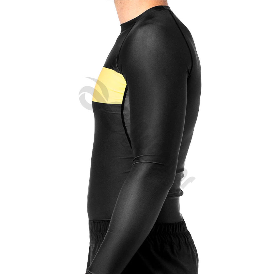 เสื้อแรชการ์ดแขนยาวของผู้ชายพิมพ์ลายได้ตามต้องการพร้อมชุดออกกำลังกายป้องกันรังสียูวี