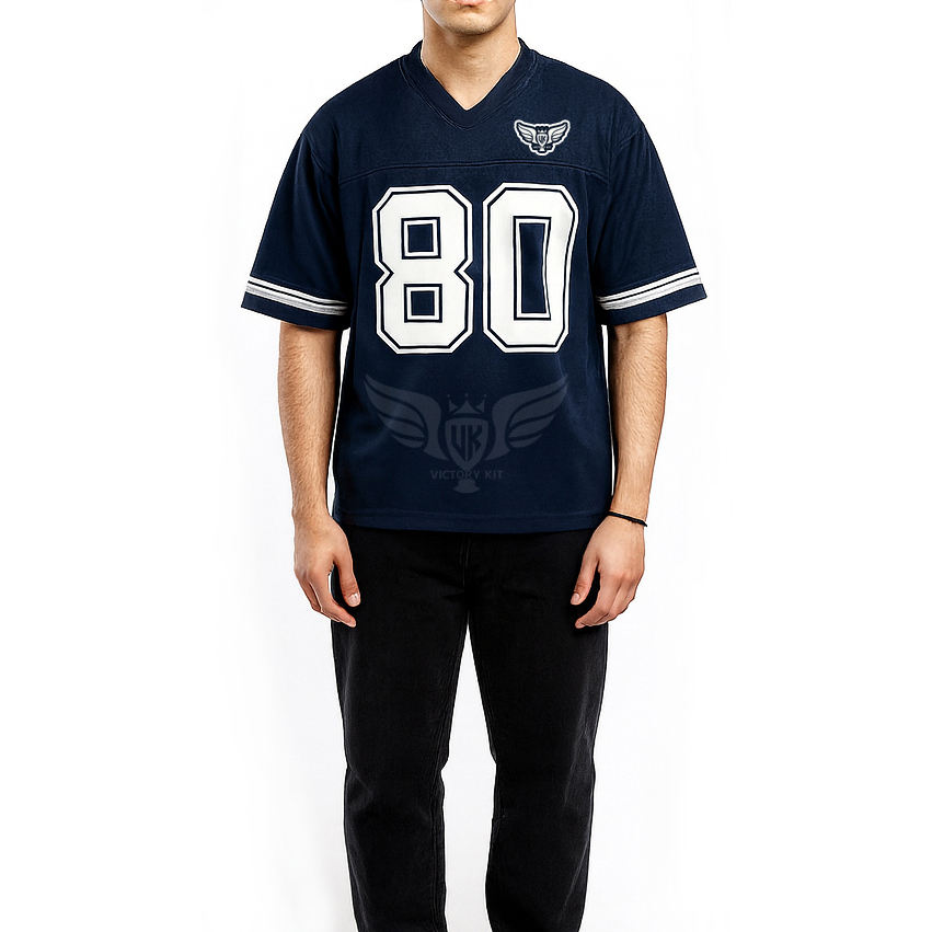 เสื้อเจอร์ซีย์ตาข่ายพิมพ์ลายตามสั่งสำหรับแฟนอเมริกันฟุตบอล ทรงหลวม ไซส์พลัส เสื้อยืดคอวี