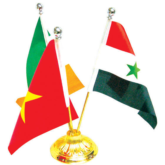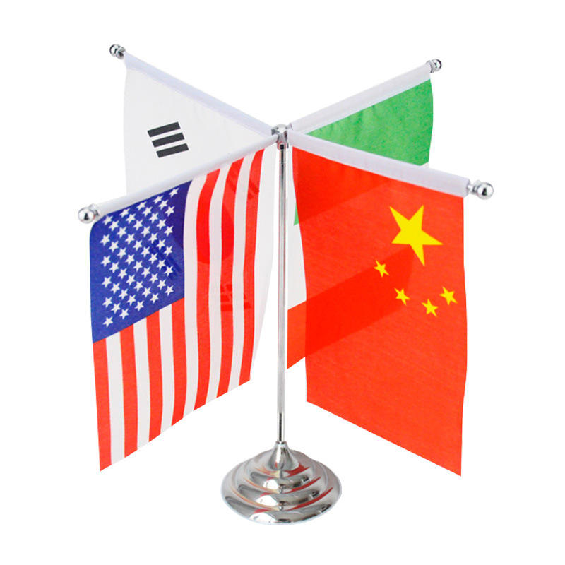 ที่วางธงโต๊ะทำจากสแตนเลสพิมพ์ลายทำจากโพลีเอสเตอร์สำหรับตกแต่งโต๊ะสำนักงานแห่งชาติพร้อมฐานโลหะ