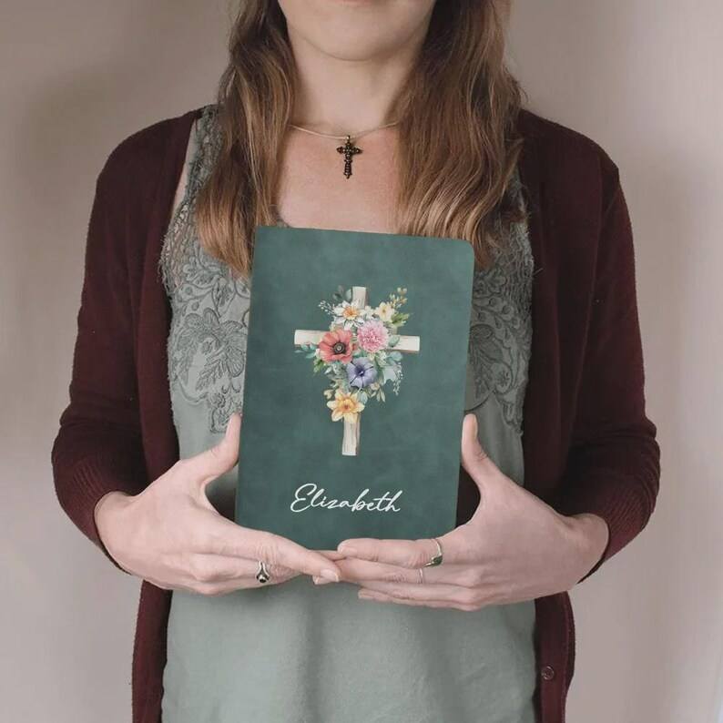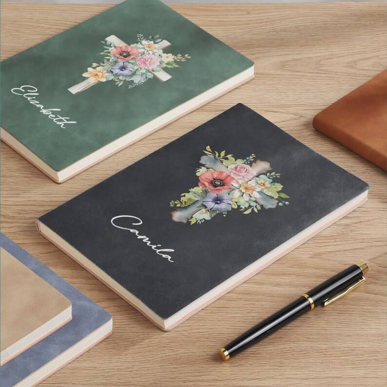 สมุดบันทึกคำอธิษฐานพิมพ์ลายตามสั่ง พร้อมลายกางเขนดอกไม้ สมุดบันทึกการศึกษาพระคัมภีร์แบบกำหนดเอง ของขวัญสำหรับชาวคริสต์