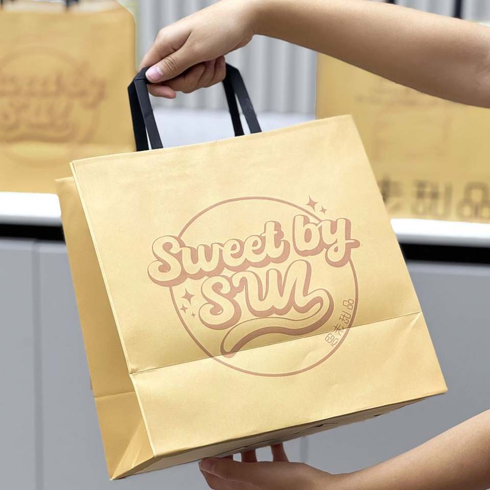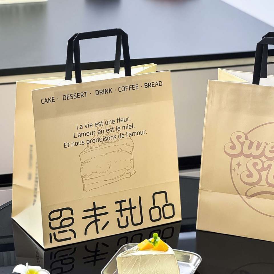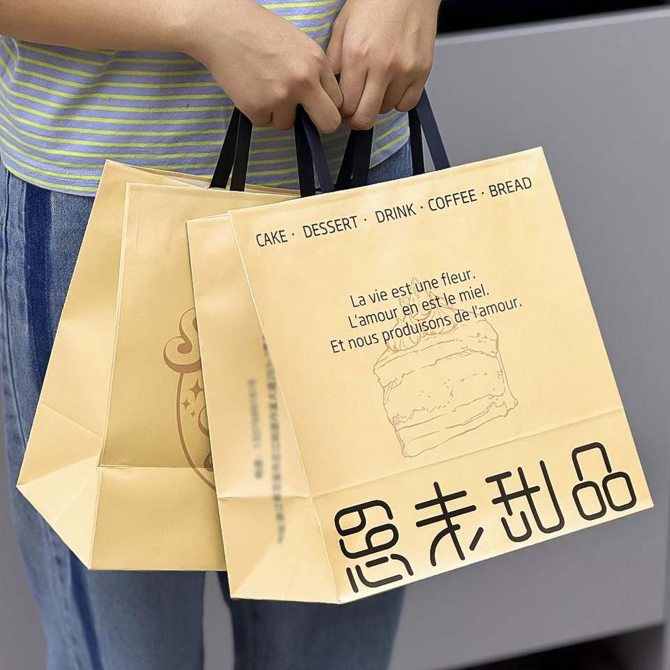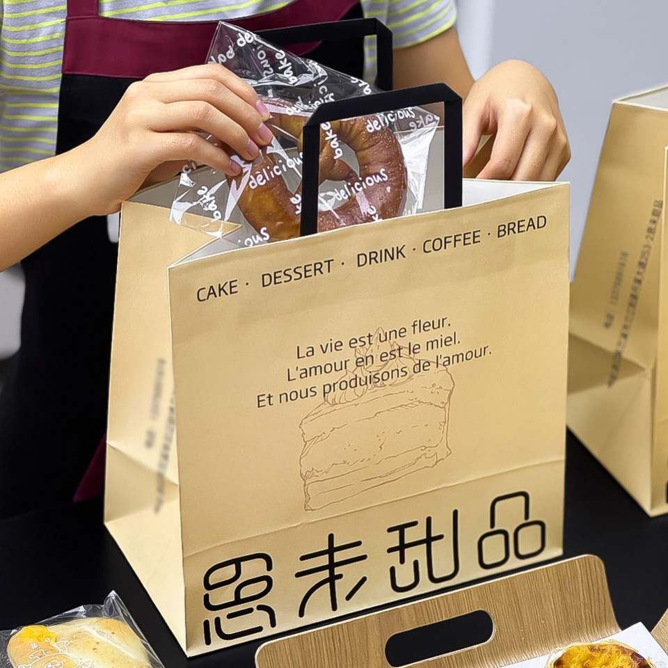 ถุงกระดาษคราฟท์รีไซเคิลพิมพ์ลายตามสั่ง สำหรับบรรจุภัณฑ์อาหารและขนมอบ พร้อมหูหิ้วและโลโก้ของคุณเอง