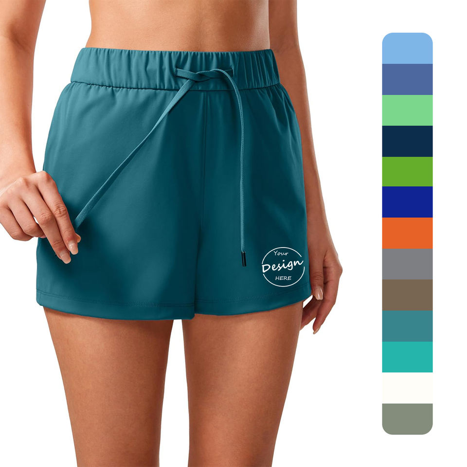 กางเกงขาสั้นสำหรับออกกำลังกายในยิมสำหรับผู้หญิงกางเกงขาสั้นผ้าโพลีเอสเตอร์แห้งเร็วระบายอากาศได้ดี