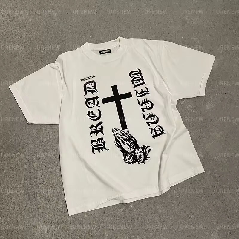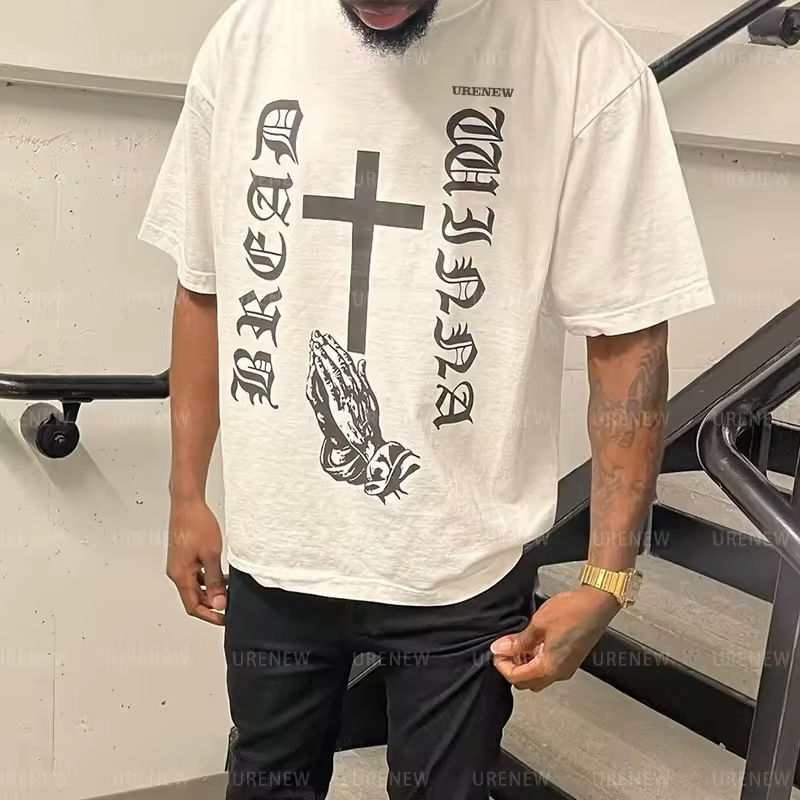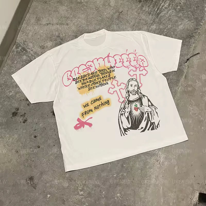 Custom Print logo Streetwear Wholesale Vintage Heavyweight Basic White Graphics Oversized Unisex Men's T-Shirt