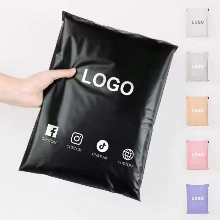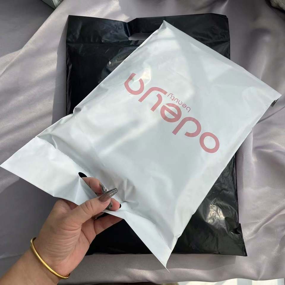 ซองพลาสติกพิมพ์โลโก้สีชมพูสำหรับส่งพัสดุ ซองไปรษณีย์พลาสติกแบบมีหูหิ้ว