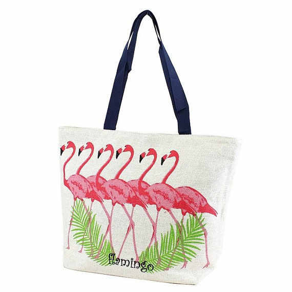 พิมพ์แบบกําหนดเองตามความต้องการกระเป๋าชายหาดกระเป๋าลาย Flamingo สําหรับกระเป๋าถือสุภาพสตรี