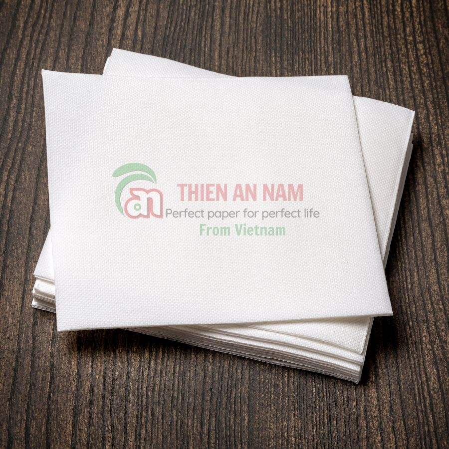 18gsm 1ชั้นพิมพ์ลายกำหนดเอง9.5X9.5เยื่อไม้แท้ผ้าเช็ดปากสีขาวและผ้าเช็ดปากสั่งจำนวนมากสำหรับร้านอาหารและโรงแรม